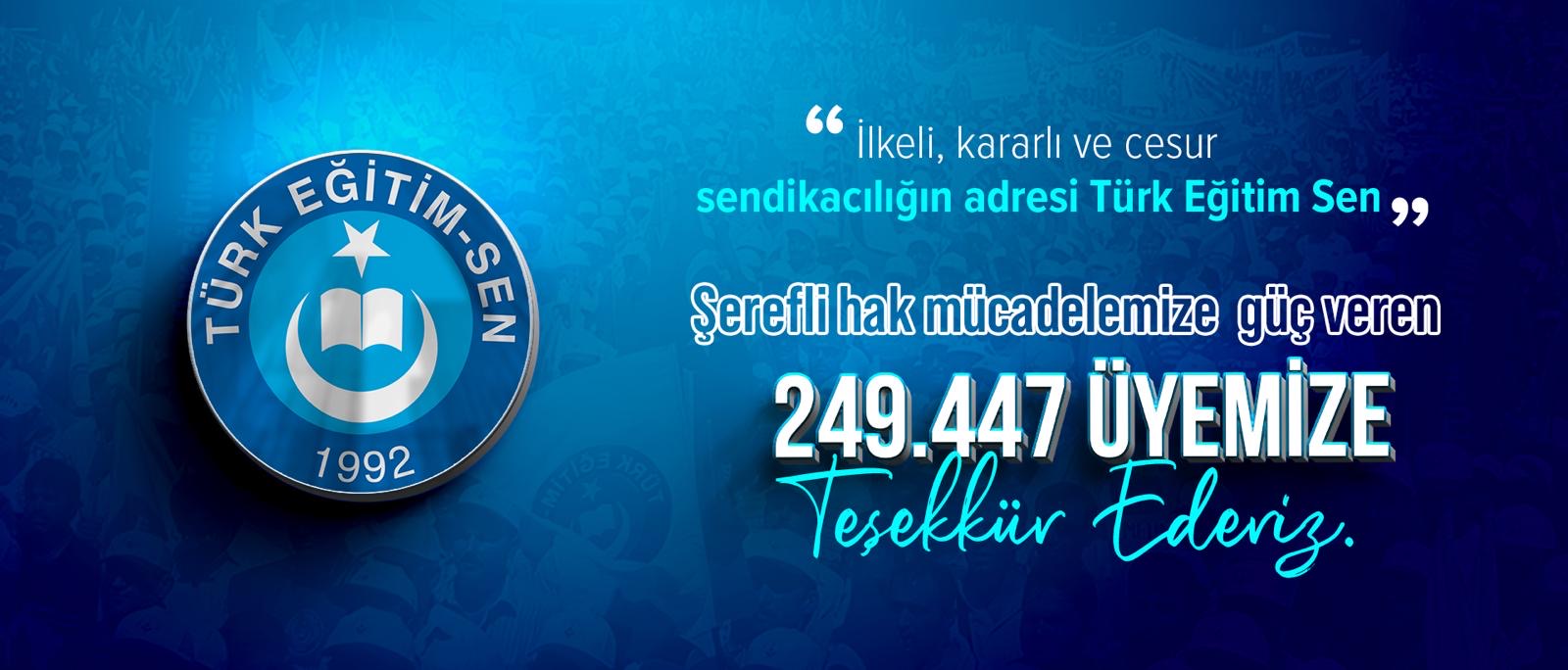 Türkiye’nin sendikası Türk Eğitim Sen’e omuz verdikleri için 249.447 üyeme teşekkür ediyorum.