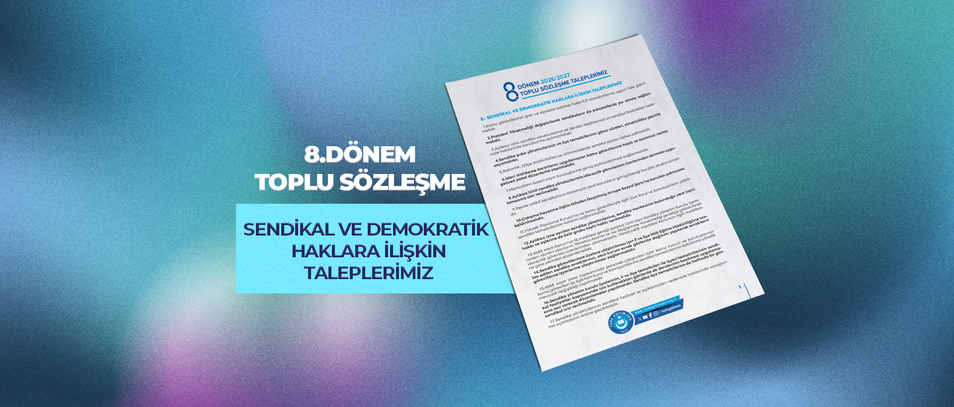 8.DÖNEM TOPLU SÖZLEŞME SENDİKAL VE DEMOKRATİK  HAKLARA İLİŞKİN TALEPLERİMİZ