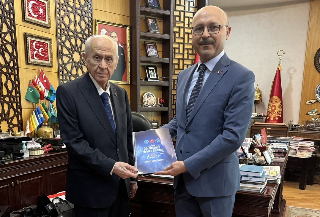 Önümüzdeki günlerde Türkiye Büyük Millet Meclisi gündemine gelecek olan Öğretmenlik Meslek Kanununa dair Türk Eğitim Sen’in görüş ve taleplerini içeren  raporu da Sayın Bahçeli’ye takdim eden Geylan, “Eğitim çalışanlarının talep ve sorunlarına karşı her zaman yakın alaka ve hassasiyet gösteren Sayın Genel Başkanıma tüm meslektaşlarım adına şükranlarımı sunuyorum” dedi. Genel Başkan Talip Geylan açıklamasında şunları kaydetti: “